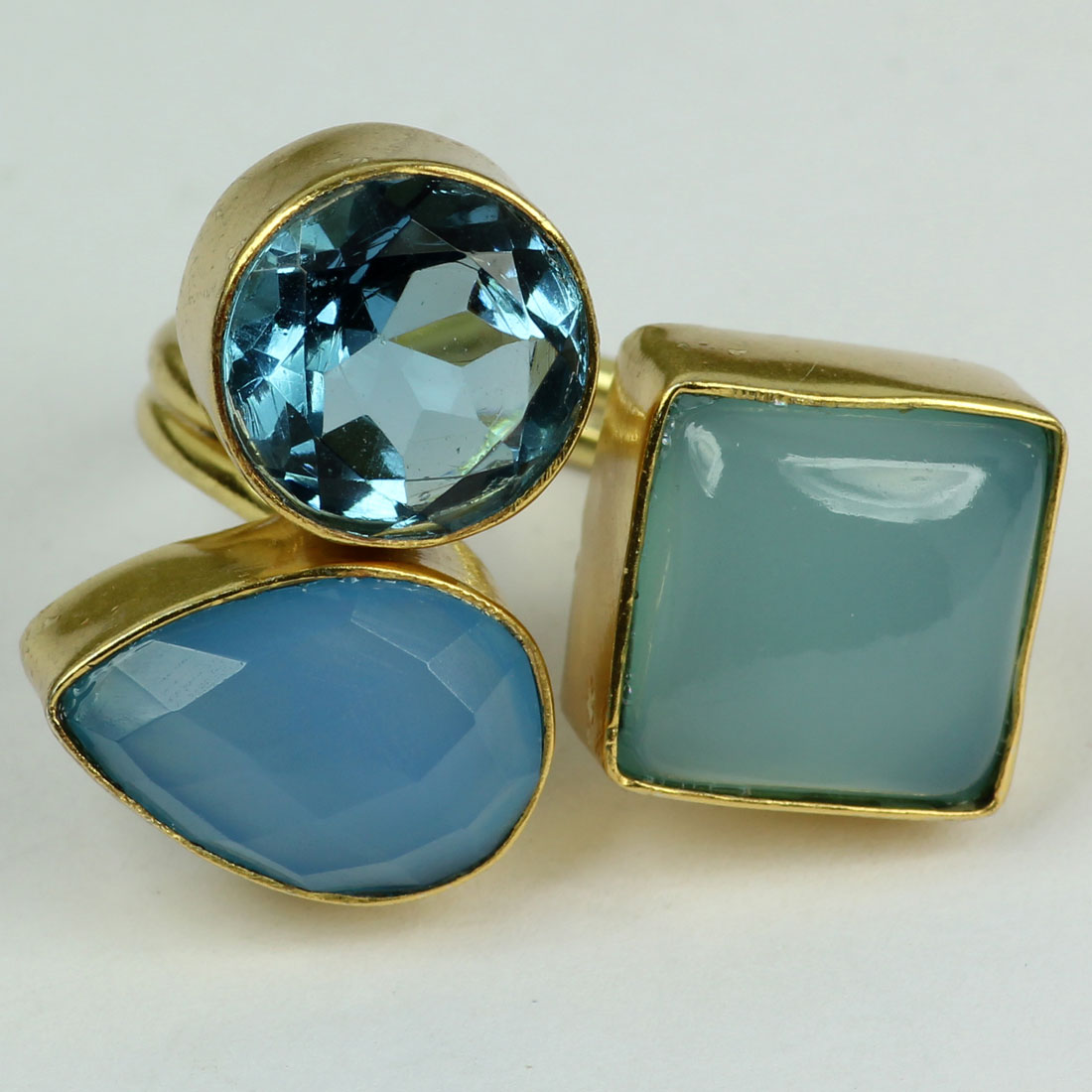 Calcedony,Citrine and Aqua H - BRR952-Stylish Fashionable Designs In Rough Brass Ring
