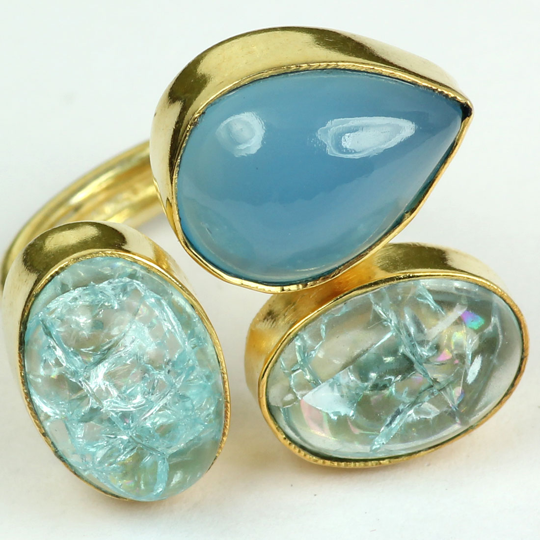 Blue Calcedony and Jesper F - BRR953-Fabulous Design Indian Wholesale Handmade Rough Brass Rin