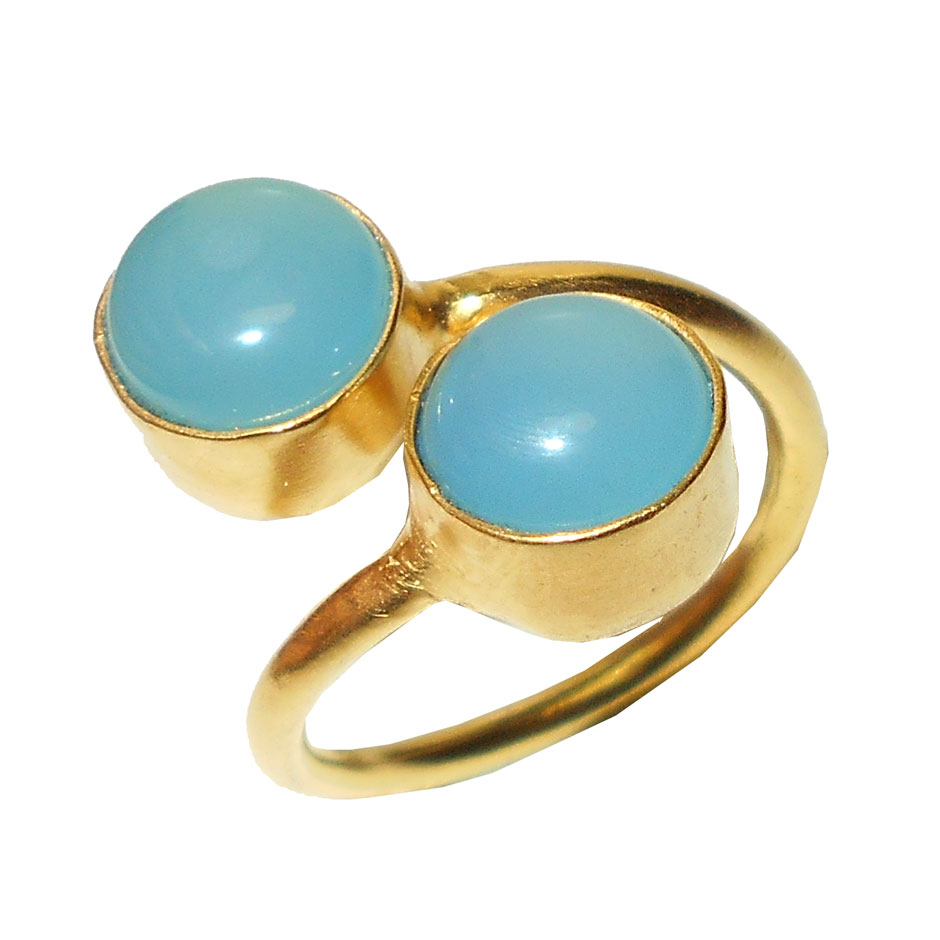 Aqua Chalcedony cut D - PR975- Costume Fashion style Brass gold vermeil Rings