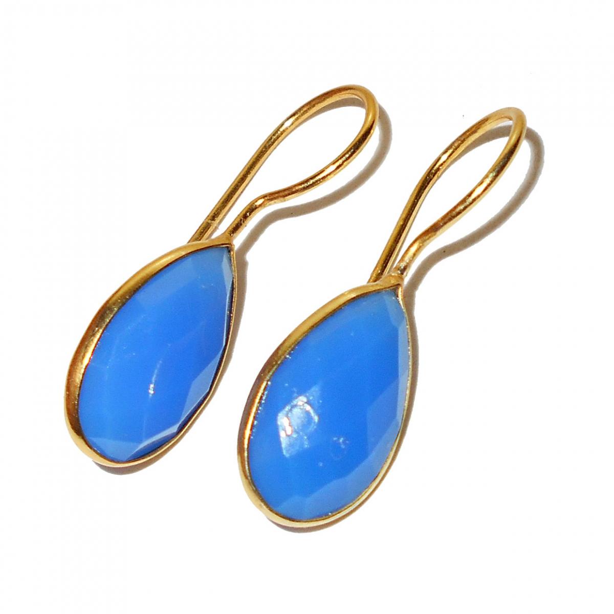 Blue Chalcedony cut A - BJS924- Summer collection Fashion gold vermeil Brass Earrings wh