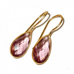 Briolite cut gemstone Brass Earrings with gold plated over Brass -BJS924