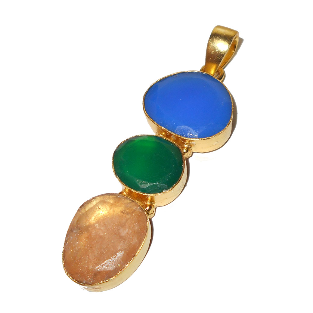 Blue chalcedony, Green onyx, Bio Rutile cut C - RBJ931- Unique fashion style jewelry wholesale store India