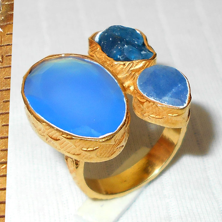 Lapis lazuli, Kyanite, Crystal quartz A - RBJ947- Wholesale chunky Rings, fashion costume chunky Rings