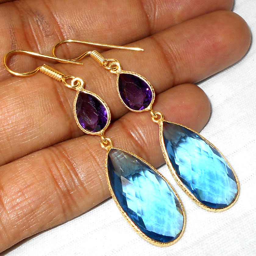 Blue hydro & Aqua Hydro glass D - BJS988-Briolite Fashion Trend Earring with gold plated over the
