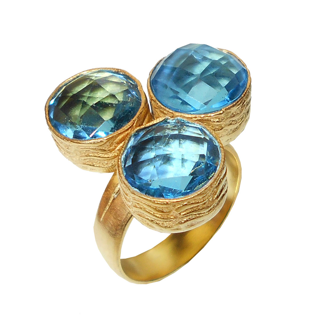 Blue Hydro glass cut D - RBR920- Cluster Rings, Gold vermeil Rings, Brass fashion costume
