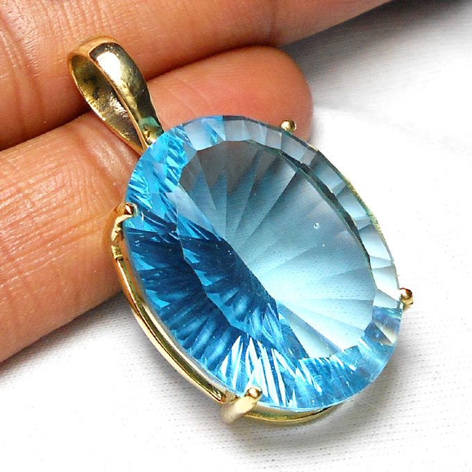 Blue Sapphire Corundum cut K - BSP995- Concave cut Hydro quartz gems Brass Pendants