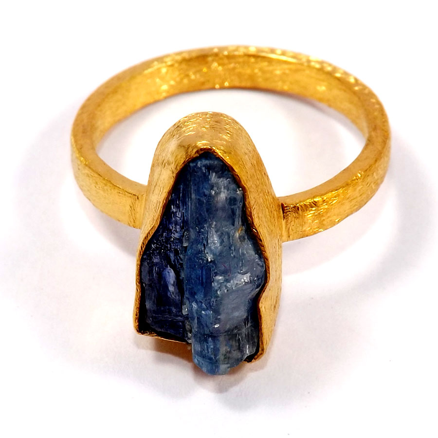 Blue Kyanite D - BRR930-Elegant Rough Gemstone With Brass Alloy Fashion Rings