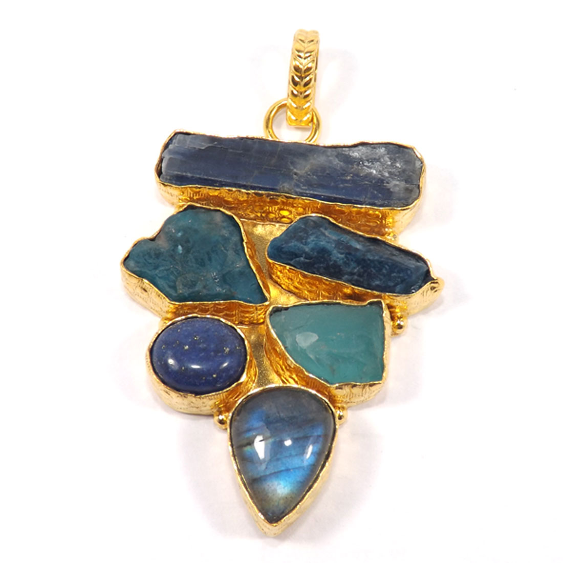 Fabulous Mix Gemstones Rough Chunky Brass Pendant-CKP990..