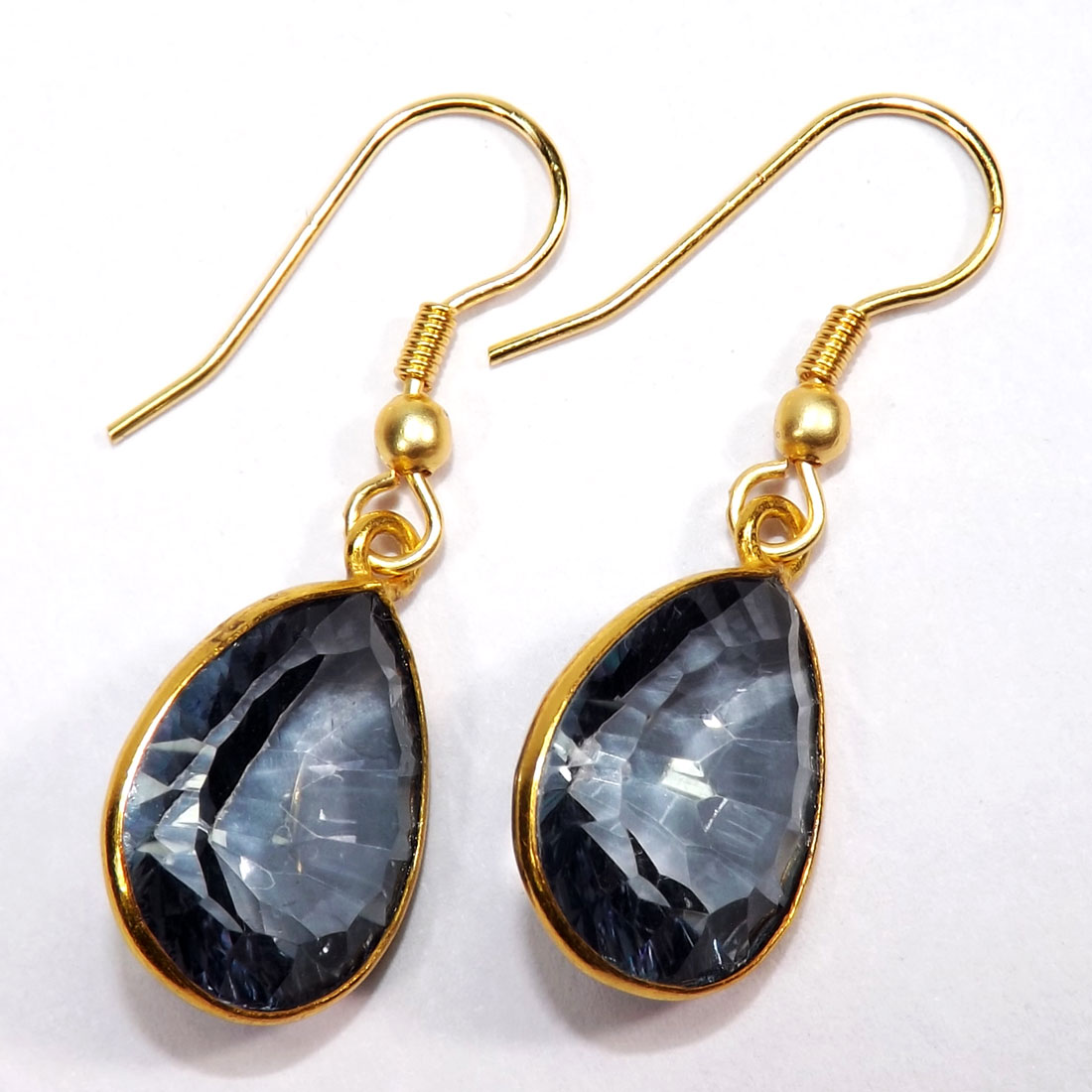 Blue Mystic Quartz Gemstone Brass Bezal Hook Dangle Earrings-BJS906