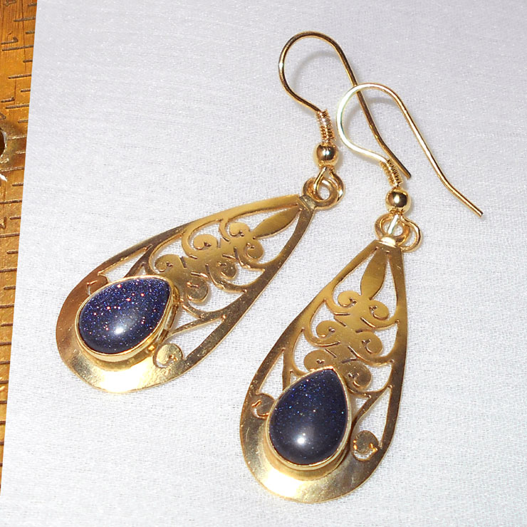 Blue sand stone cab G - NE996- Fabulous designer fashion ethnic Brass Earrings wholesale