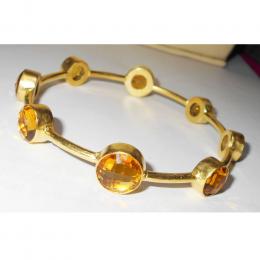 Smokey quartz cut C - BN970- Yellow gold vermeil fashion Bangles with Brass wholesale