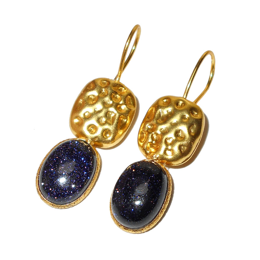 Blue send stone cab J - BJS944-Vintage fashion Bezel setting Earrings with gold plated o
