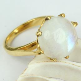 Rainbow Moonstone G - BSR848-Indian Wholesale Designer With Gold Plated Brass Ring