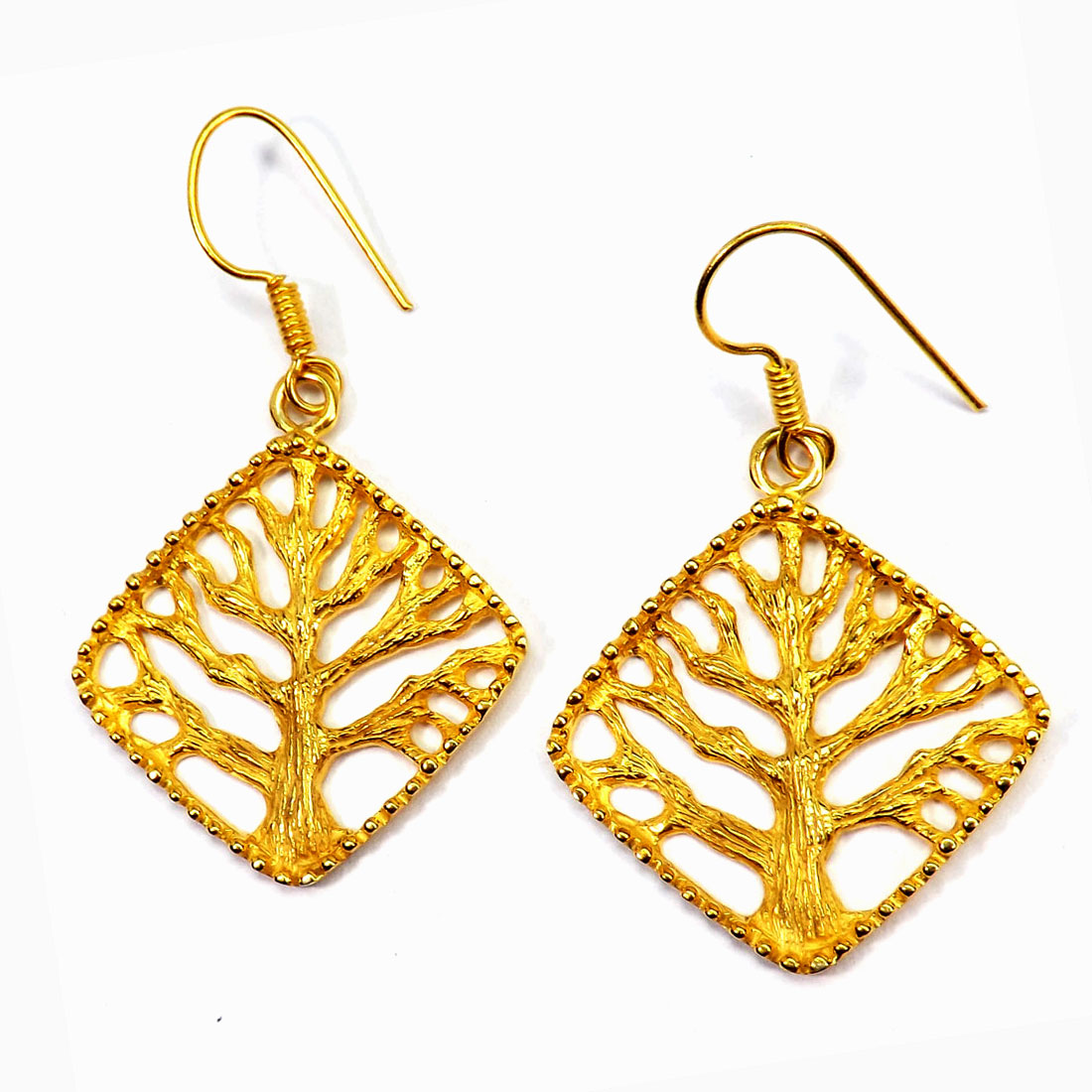 Tree of Life Made in Brass with Gold Plated Vermeil Earrings-PBJ991