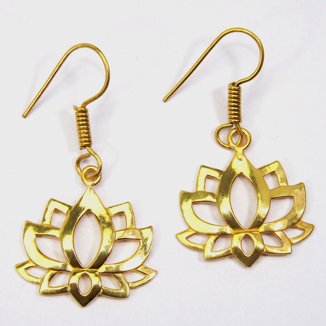 Brass Earrings O - PBJ994-Designer Made in Brass with Gold Plated Vermeil Floral Ea