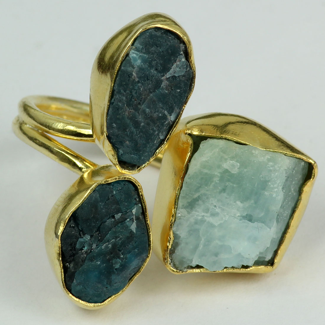 Apatite And Aqua C - BRR952-Stylish Fashionable Designs In Rough Brass Ring