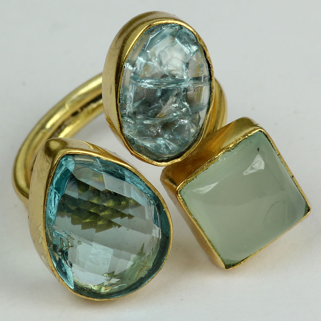 Blue Calcedony and Jesper F - BRR953-Fabulous Design Indian Wholesale Handmade Rough Brass Rin