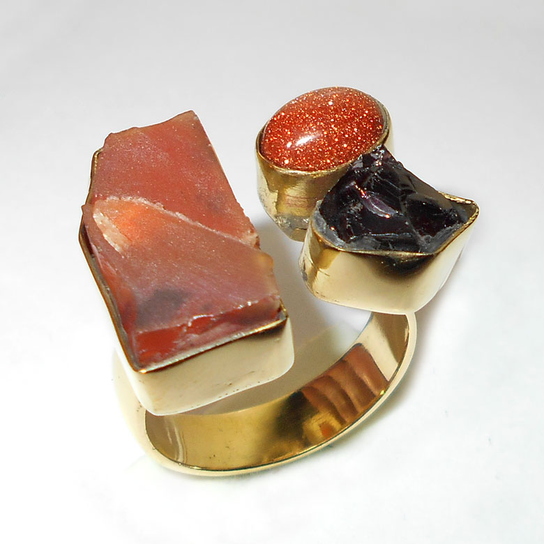 Carnelian, Garnet, gold send stone A - RBR994- Chunky style fashion cluster Rings with Rough gemstone w