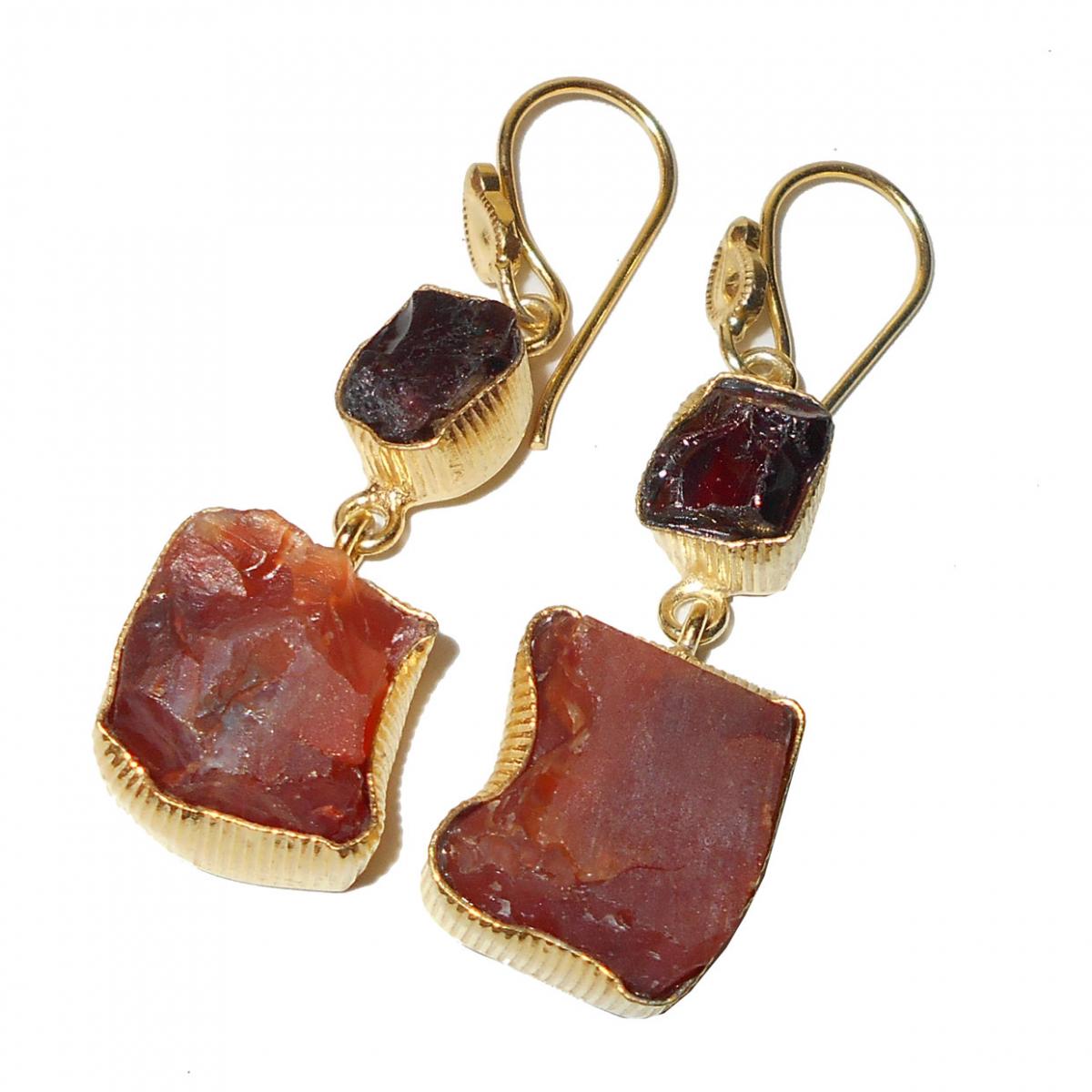 Carnelian, Garnet C - RBE978- Raw gems with Brass gold vermeil Earrings wholesale