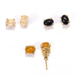 Tiger Eye Labradorite Amethyst 3 Pair E - STD976-Wholesale Designer Brass with Gemstone Stud Earrings