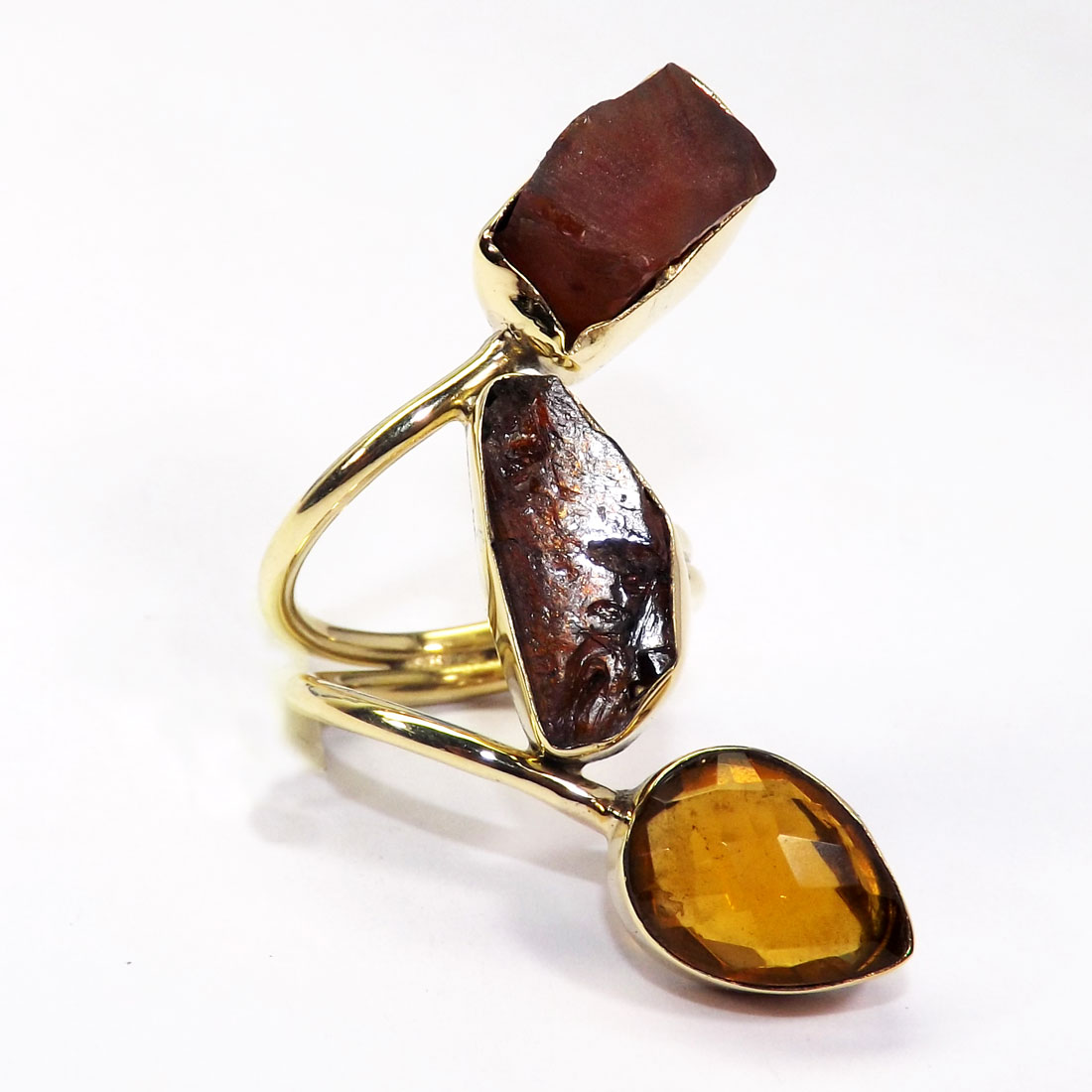 Carnelian Orangle Kynite Rough and Hydro Glass A - BRR999-Indian Wholesale Gemstone Made in Brass Rings