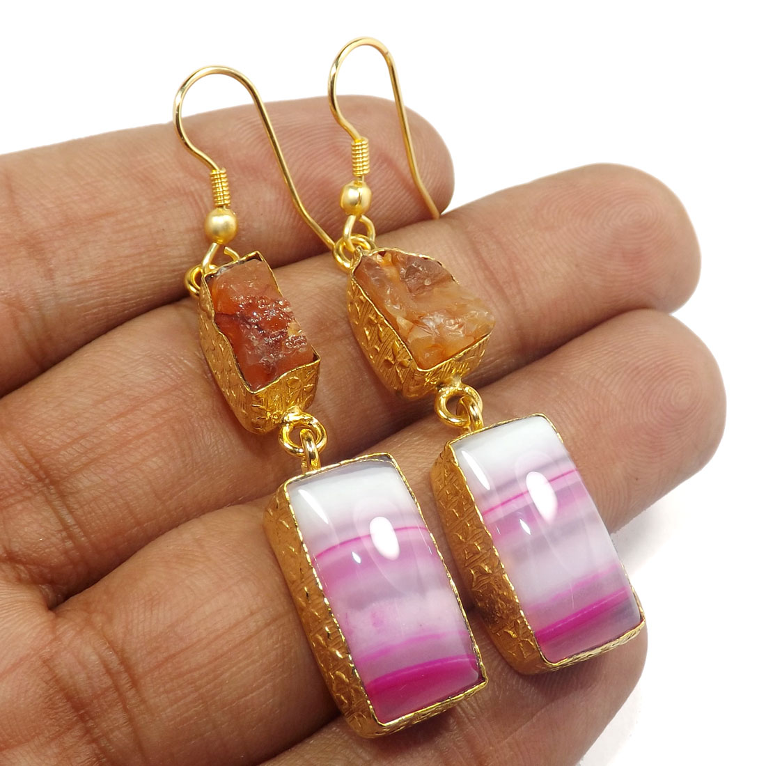 Glamours Two Stone Gold Plated Designer Rough Brass Earrings-PBE964..