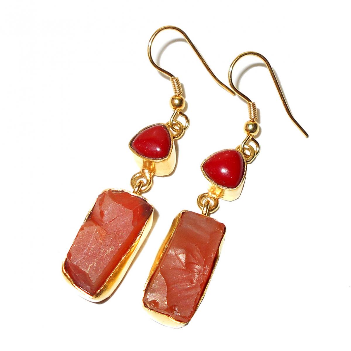 Carnelian, Red coral O - RBE969- Color gemstone fashion Earrings, Rock style fashion jewe