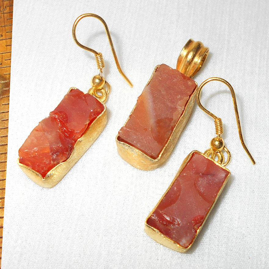 Carnelian Rough G - SET991-Carnelion gemstone fashion Pendant & earring sets with go