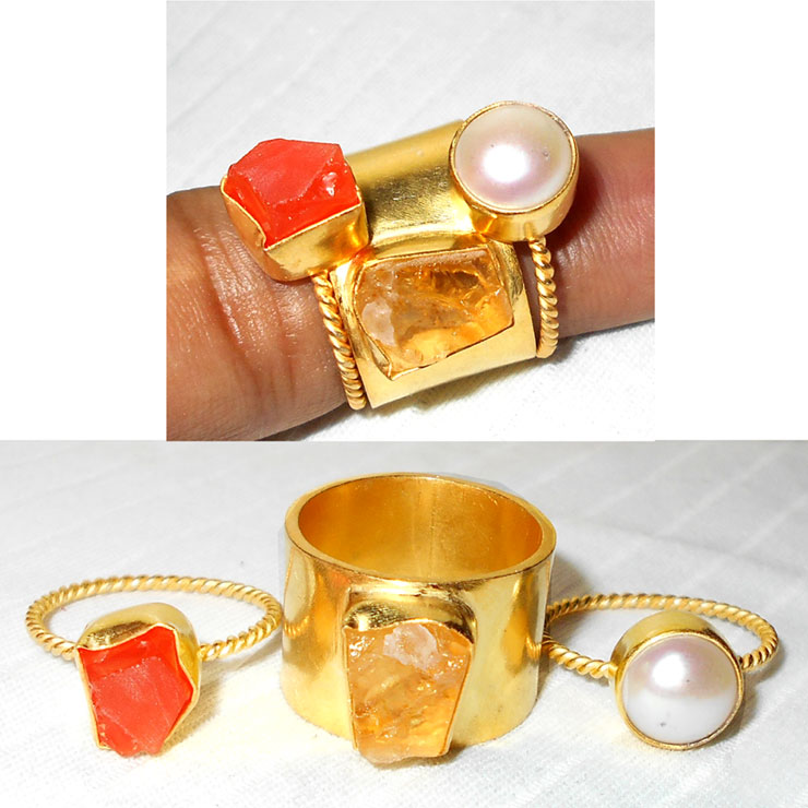 Carnelian, White pearl, Citrine O - STR997-Fabulous Fashion Stack Rings with gold plated over the Br
