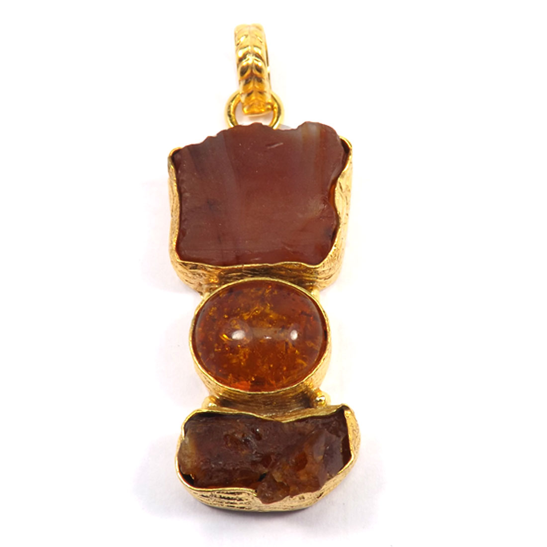 Carnelian,Amber Cab & Sunstone G - RBJ901-Stylish Fashionable Three Stone Rough Brass Pendants