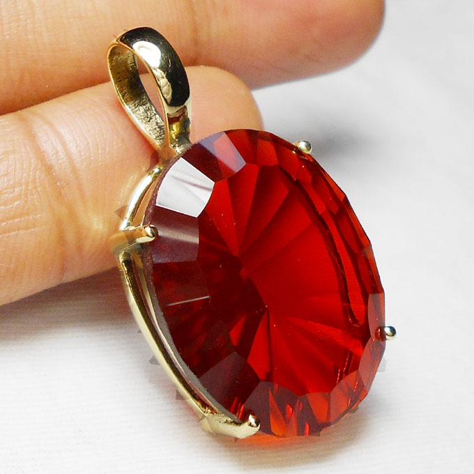 Red hydro glass cut G - BSP995- Concave cut Hydro quartz gems Brass Pendants