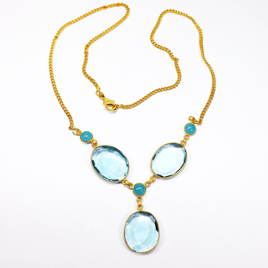 Chalcedony Blue Topaz Hydro C - BGN986-Brass with Gold Plated Gemstone Fashion Bezal Necklace