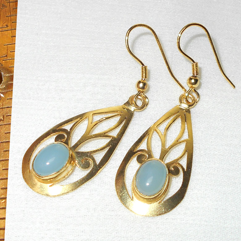 Chalcedony cab A - NE997-Beautiful designer fashion Earrings with gold vermeil over
