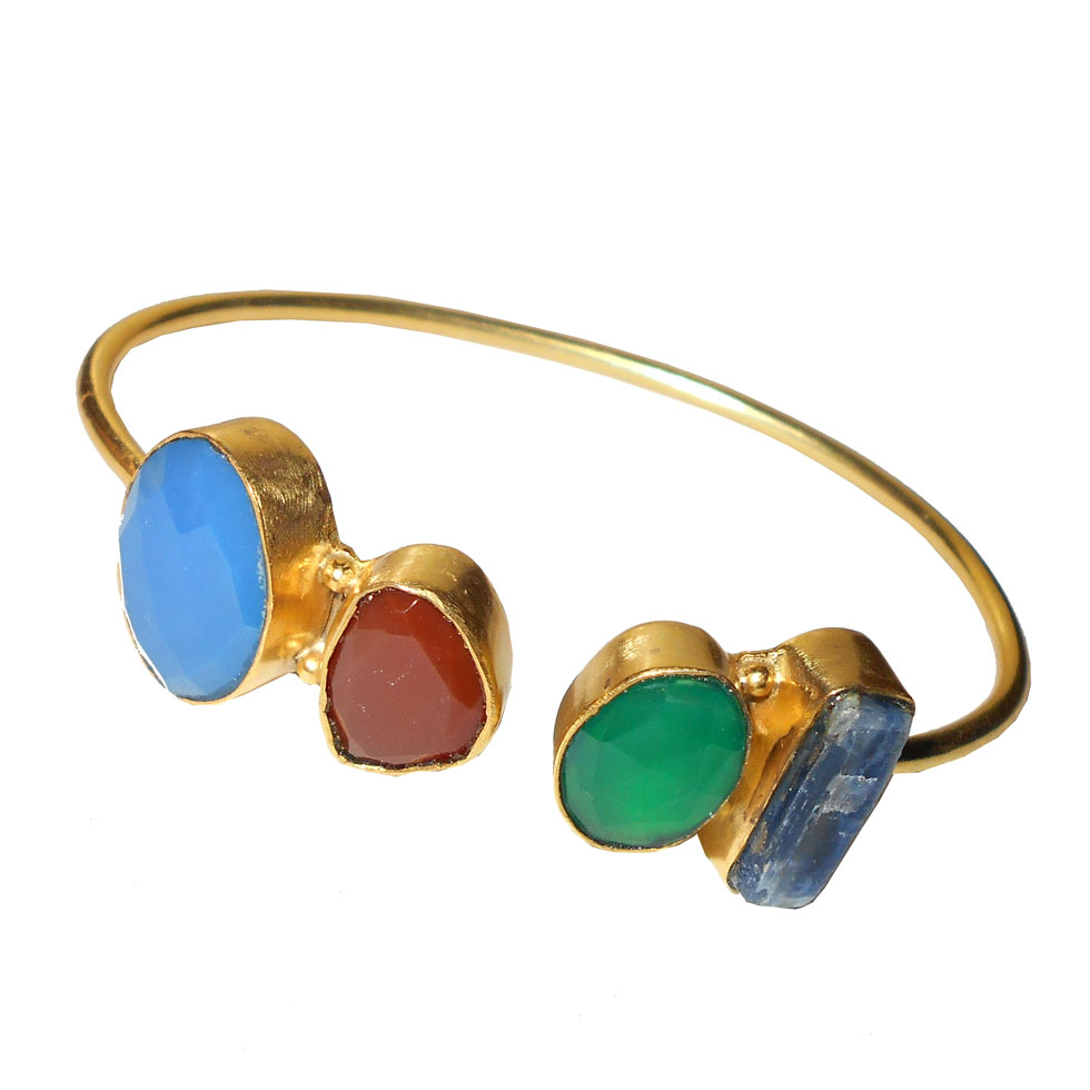Chalcedony, Carnelian, Green onyx, Blue Kyanite O - RBB984- Semiprecious gemstone Bangles with Brass gold plated ove