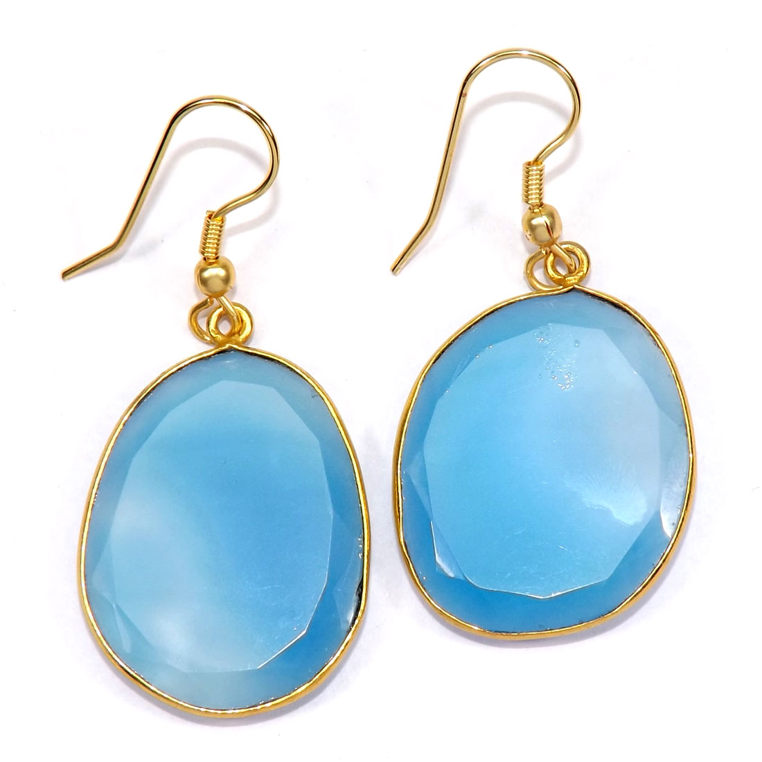 Chalcedony Cut D - BJS892-Chalcedony Cut Gemstone Brass Bezal Hook Earrings