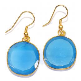 Chalcedony Cut Gemstone Brass Bezal Hook Earrings-BJS892..
