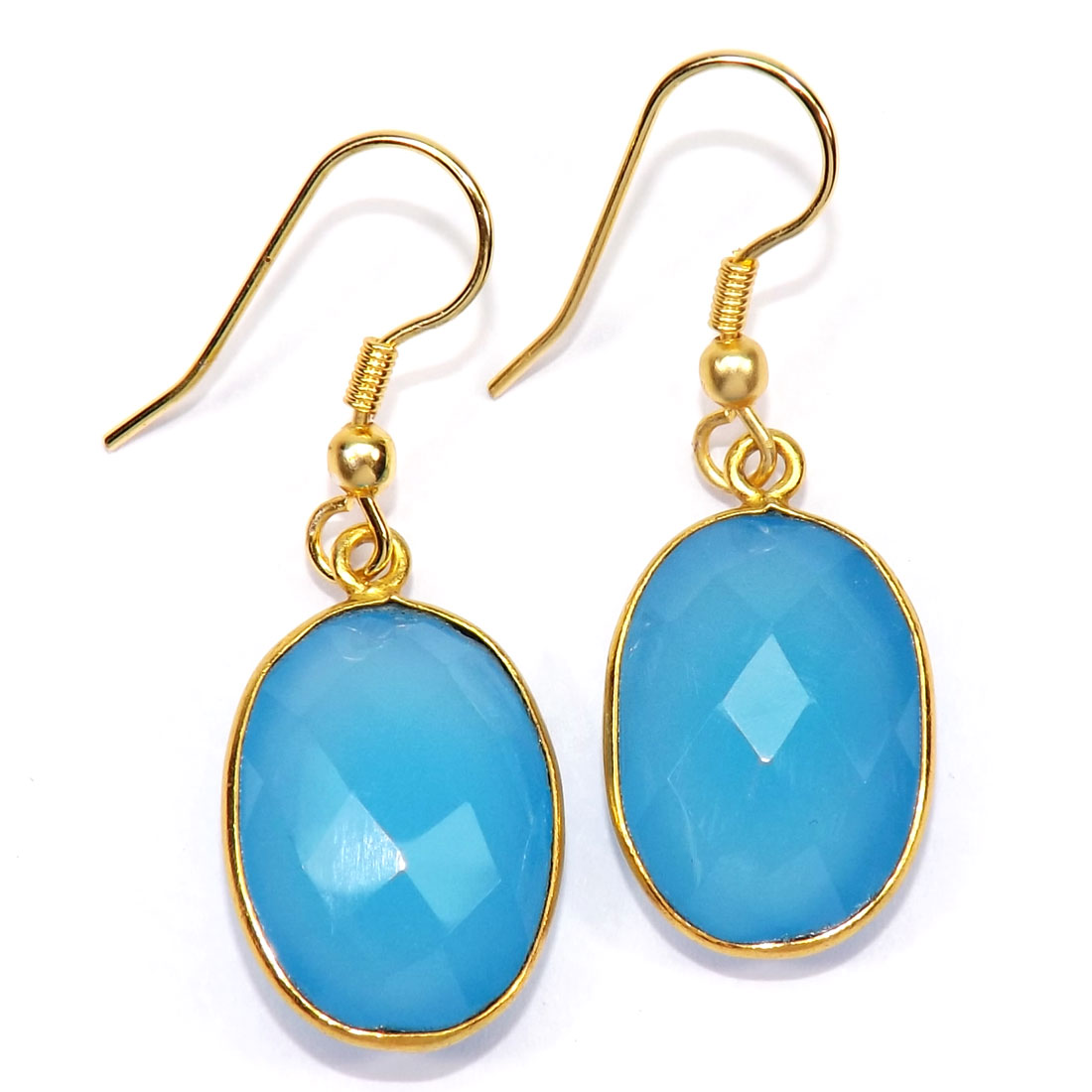 Chalcedony Cut Gemstone Brass Bezal Hook Earrings-BJS892..