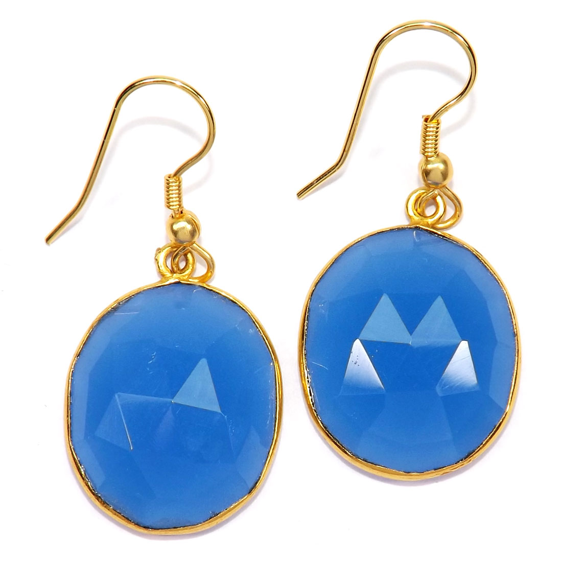 Chalcedony Cut Gemstone Brass Bezal Hook Earrings-BJS892..