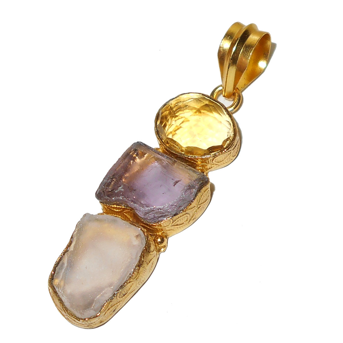 Citrine, Amethyst, Rose quartz I - RBJ937- Semiprecious gemstone fashion pendants with Brass