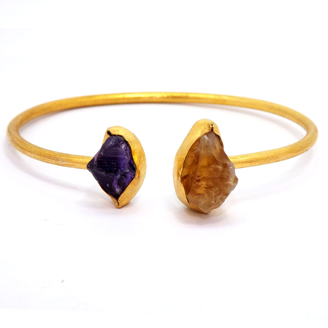 Citrine and Amethyst Rough O - RBB962-Handmade Brass Rough Gemstone Fashion Cuff Bracelets