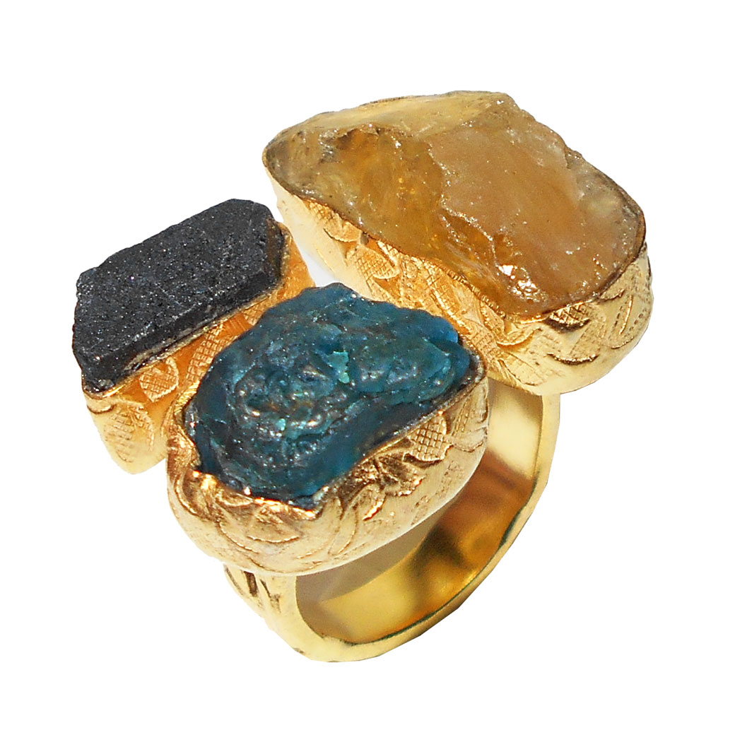 Citrine, Apatite, Black Tourmaline G - RBR958- Modern Trend Brass gold Plated Rings wholesale