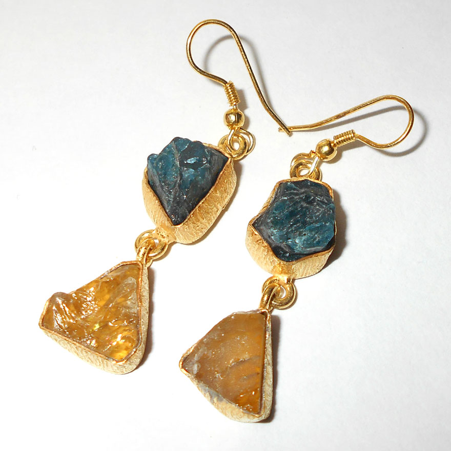 Citrine, Apatite F - RBE995-Genuine raw gemstone Earrings with gold plated over Brass