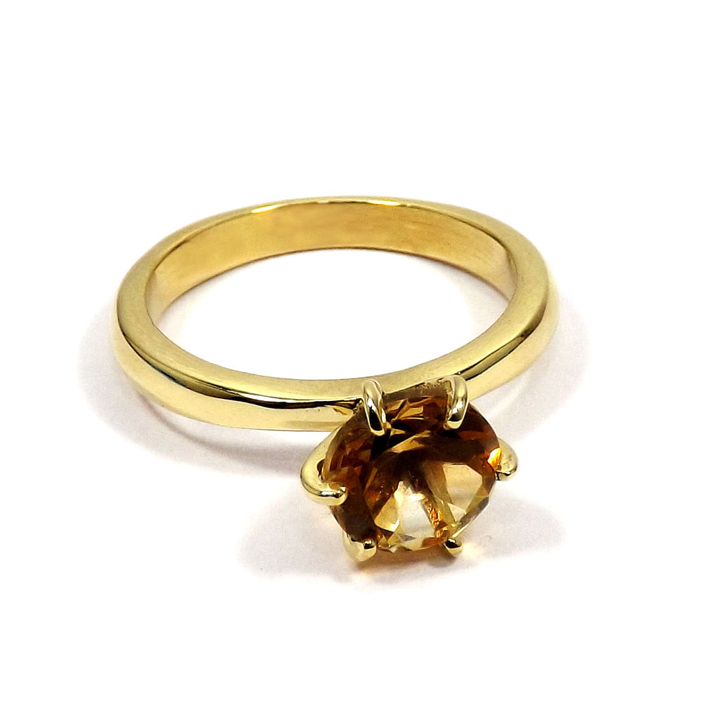 CBR971- Faceted Citrine 8x8 mm Rough Gold Plated Brass Casting Ring..