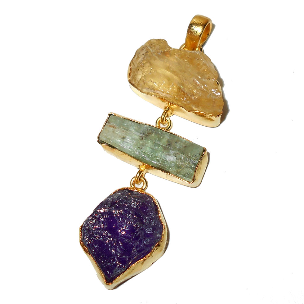 Citrine, Green kyanite, Amethyst B - RBJ939- Rock style fashion Pendants with Raw gemstone Brass whol