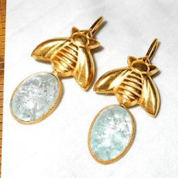 Petrol hydro glass cut F - BJS953-Exclusive contemporary fashion Designer Bezel Earrings wh