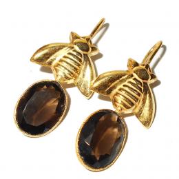 Smokey quartz cut H - BJS953-Exclusive contemporary fashion Designer Bezel Earrings wh