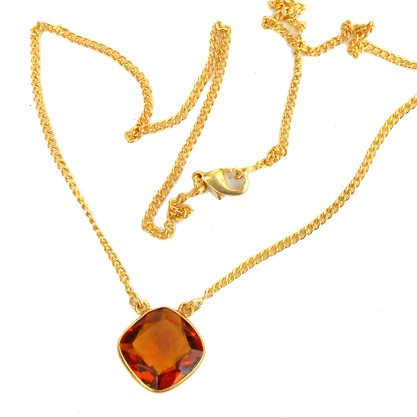 Citrine hydro glass cut C - BSN989- Wholesale costume fashion Necklaces with gold vermeil ov