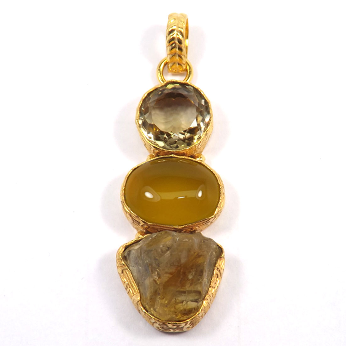 Indian Wholesale Designer Gorgeous Three Stone Rough Brass Pendant-RBJ903