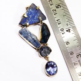 Lapis Kynite Apatite Tanzanite Amethyst Cut O - CKP996-Mix Cut Cab Rough Gemstone Made in Brass Chunky Pendants