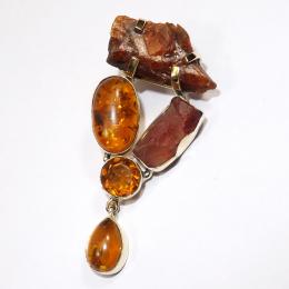 Multi Gemstone F - CKP996-Mix Cut Cab Rough Gemstone Made in Brass Chunky Pendants